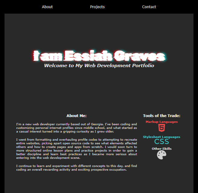 I'm a new web developer currently based out of Georgia. I've been coding and customizing personal internet profiles since middle school, and what started as a casual interest turned into a gripping curiosity as I grew older.